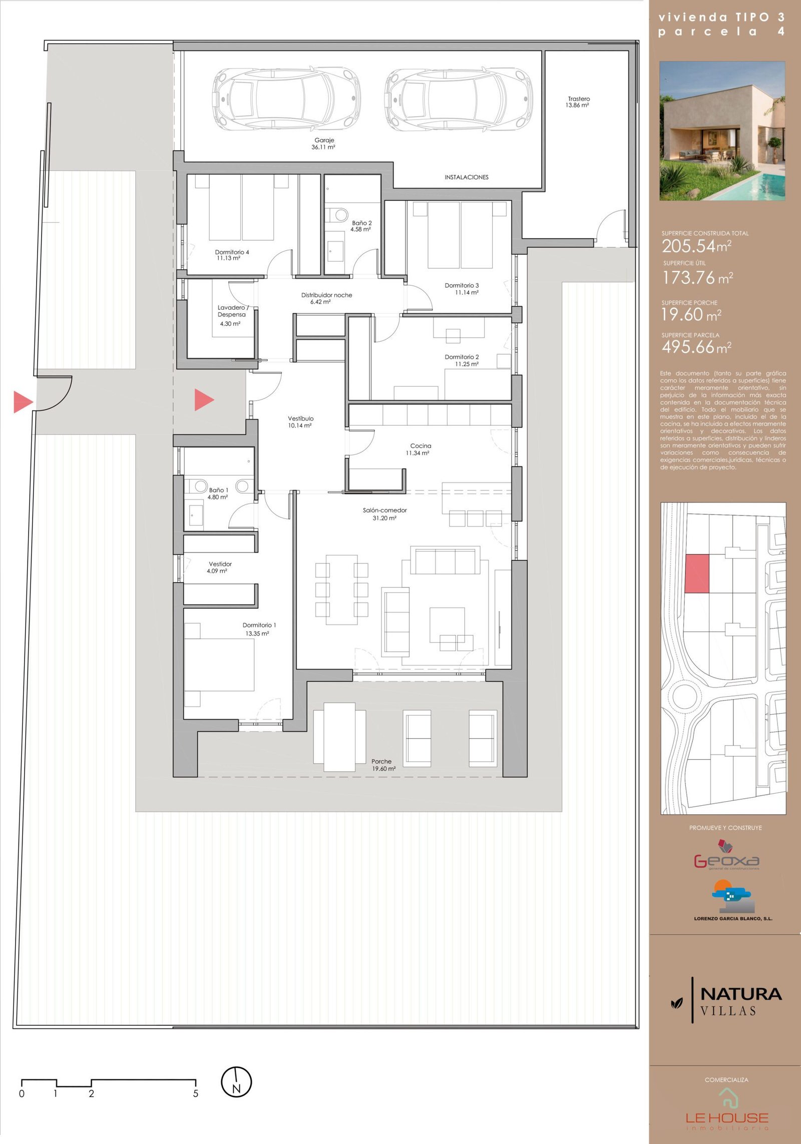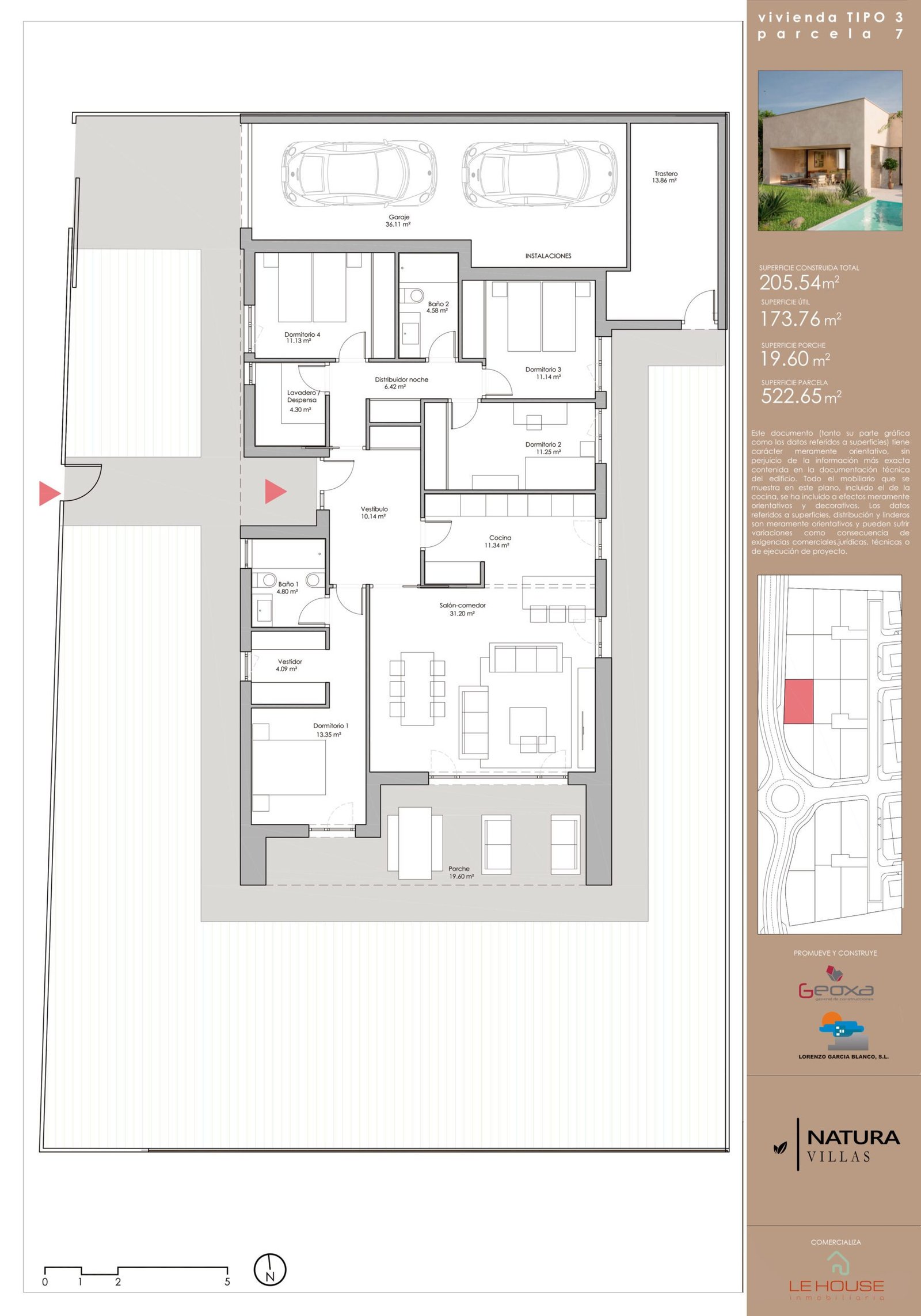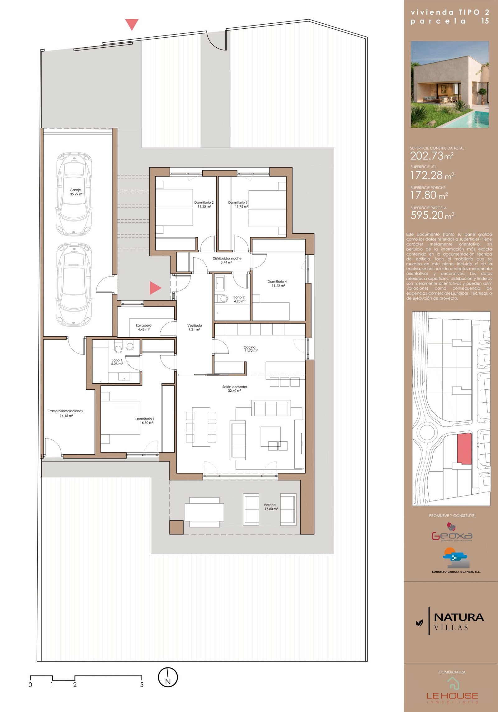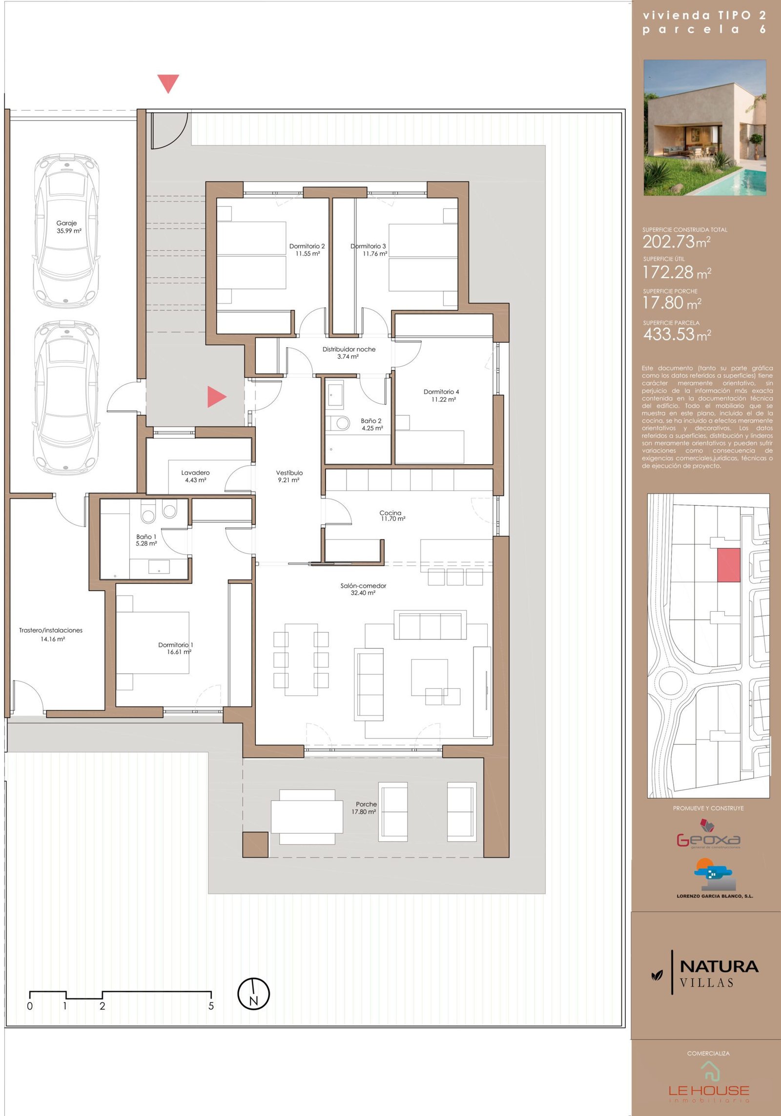 - Parcela privada con jardín y opción de piscina.